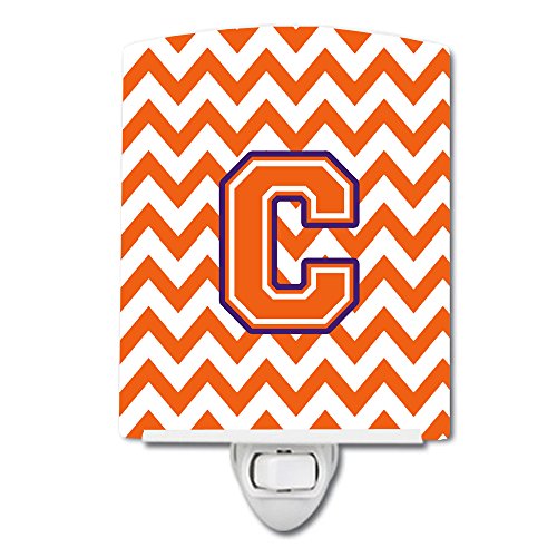 Caroline's Treasures Letter C Chevron Orange and Regalia Ceramic Night Light, 6 x 4", Multicolor