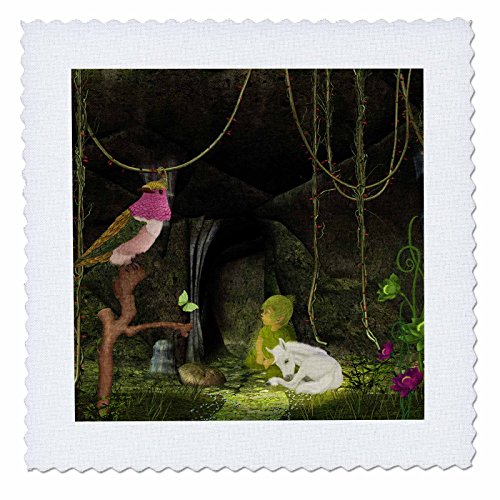 3dRose Cute Sleeping Unicorn Baby with Elf Quilt Square, 12 x 12"