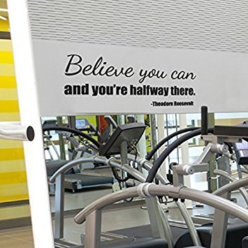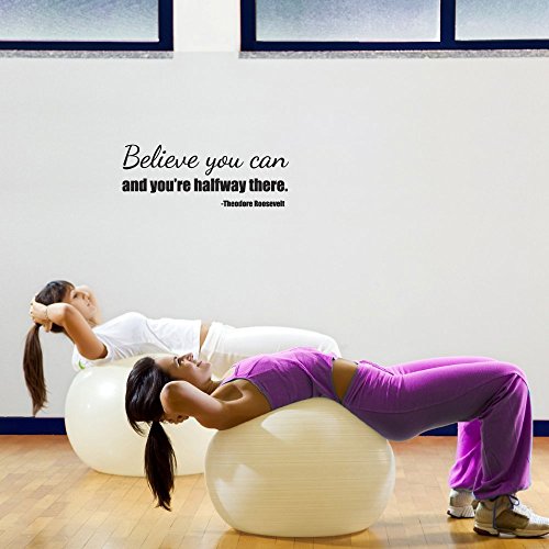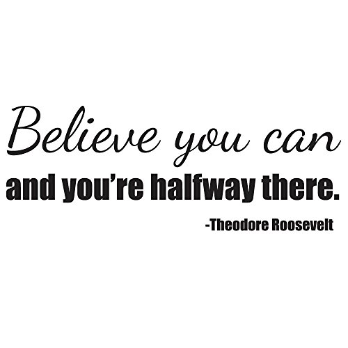 Educational /Motivational/Inspirational Vinyl Wall Quotes-Believe You Can and You're Halfway There - Theodore Roosevelt - Educational Fitness Removable Vinyl Wall Decal - 30" X 11" Black By Katazoom Decals