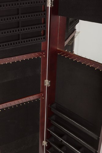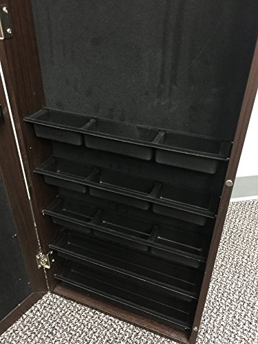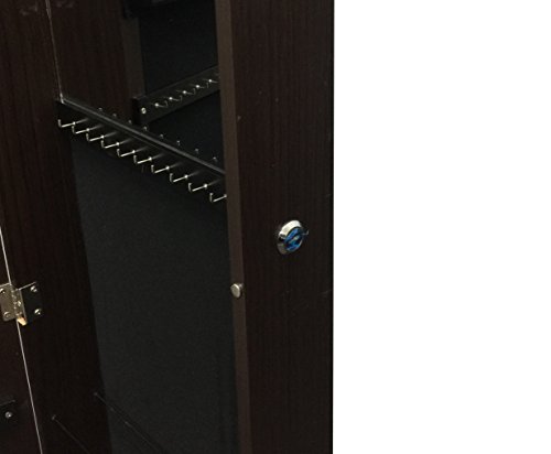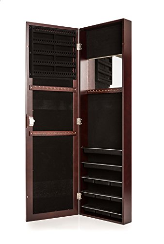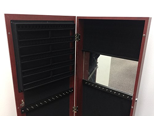-. Feature : Hangs Over The Door Or Wall Mount, Includes Hanging Brackets, and Screws and more. / With Lock And Key. Feel Secure and Safer. Keep Jewelry Locked Safe, Secure, with Locking Function. / End Tangled and Messy Jewelry Problems and Find Matching Earrings, and Jewelry Quick and Easy. / Includes Hooks for Long, Short Necklaces, Room For Rings, Earrings, and Bracelet Watch Compartments / Full length outside mirror and even has Inside mirror to ensure jewelry matches on you immediately