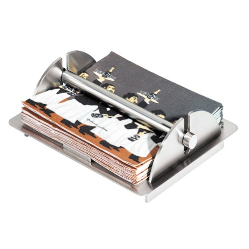 Studio : Oggi Publisher : Oggi Binding : Kitchen Product Description Sleek and elegant, this satin brushed Stainless Steel Lift Bar Napkin Holder 7066 by Oggi is equipped with rubber feet so that the holder will never scratch or move on your table. There is a lift bar in place for easy access, and to keep your napkins in place. 0