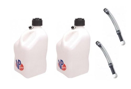 2 Pack VP 5 Gallon Square White Racing Utility Jugs with 2 Deluxe Filler Hoses