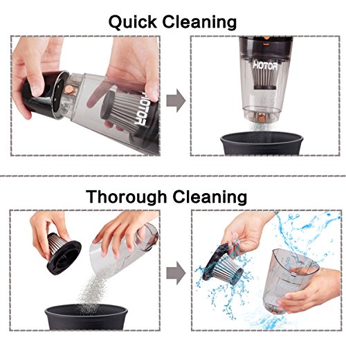 ??INNOVATIVE DESIGN?: HOTOR 4G Car Vacuum is not only distinguished by its stronger suction but also its more human-friendly design-the elegant detachable curve head of dust bin that allows you to clean the dust container more thoroughly and efficiently; Check it out in the demonstration pictures. Impressive! Impressive! Impressive!