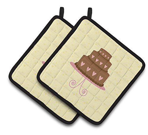 Caroline's Treasures BB7288PTHD 3 Tier Heart Chocolate Cake on Yellow Decorated Pot Holder, 7.5HX7.5W, Multicolor