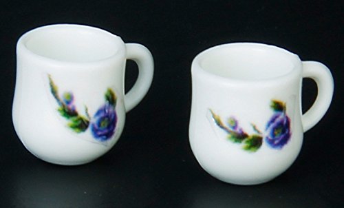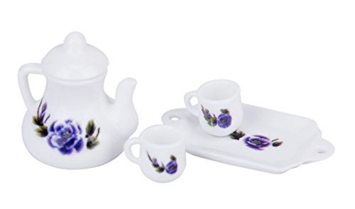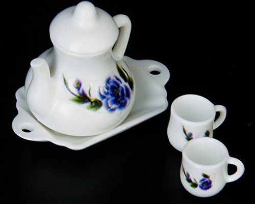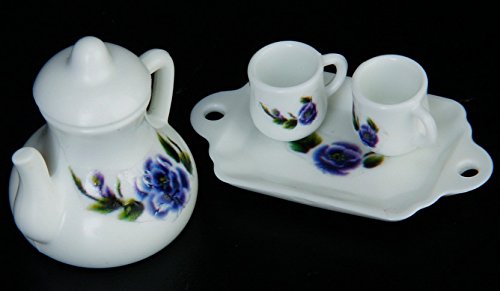 (Studio One)/Dolls/Accessories/DIRECT FROM USA/Dollhouse Miniature 2 Cups Teapot Tray Set with Floral Pattern Classic Toy Set Tableware Kitche...