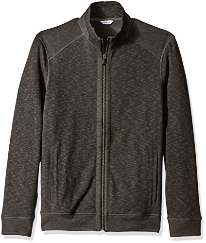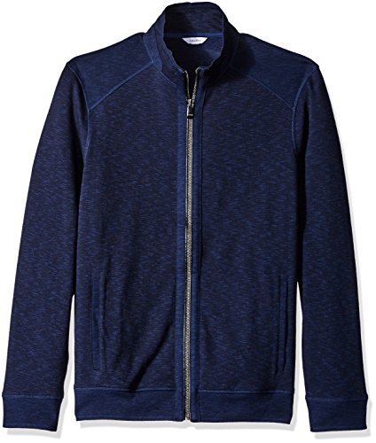 Calvin Klein Men's Jaquard Fabric Blocked Long Sleeve Full Zip Knit