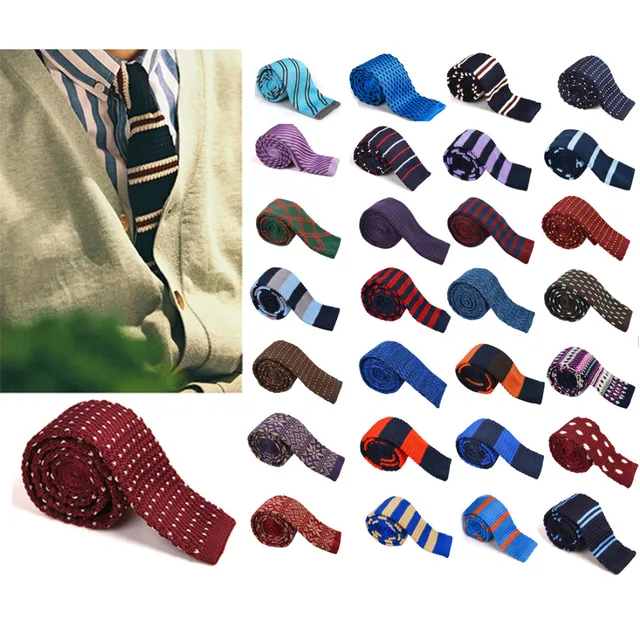 | [해외]다채로운 니트 니트 타이 넥타이 좁은 슬림 스키니 짠 스트라이프 스팟 넥타이 패션 남성 Gravata 2016 A1727a |
