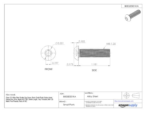 Class 12.9 Alloy Steel Socket Cap Screw, Black Oxide Finish, Button Head, Internal Hex Drive, Meets ISO 7380, 30mm Length, Fully Threaded, M8-1.25 Metric Coarse Threads, Imported (Pack of 100)