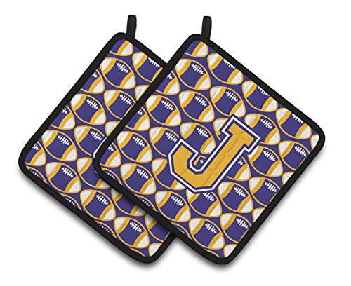 Caroline's Treasures Letter J Football Purple & Gold Pair of Pot Holders CJ1064-JPTHD, 7.5HX7.5W, Multicolor