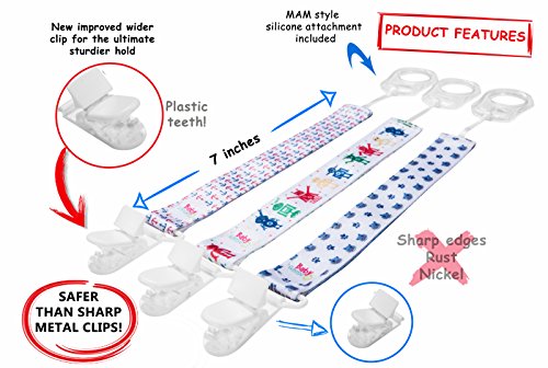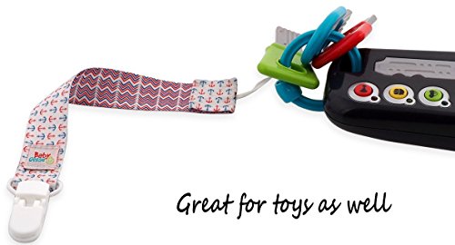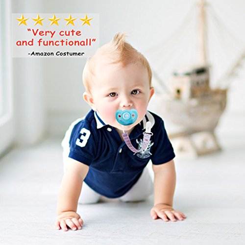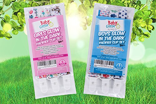 -. Feature : CAREFUL, DON'T WAKE THE BABY! - looking for those pacifiers everywhere? No worry! These clips will help you find them even in the dark. Easily attach a clip to each of your pacifiers or toys, no need to turn on the light, you will spot them instantly. / ENJOY USING MUM OR NUK BUTTON STYLE PACIFIERS? - Strling to attach the clip through the tiny holes? This set includes quick and frustration free silicon adapter rings. Simply attach the ring ones and its ready attach and detach easily and quickly at will! / LOOKING FOR SAFETY & QUALITY? - Unlike others, this product is CPSIA Compliant, meaning NO BPA, NO LEAD and NO PHTHALATES. Rigorously tested to comply with ASTM F963-11 standard, the ribbon is made of MACHINE WASHABLE, slickly and soft Poly Satin, specially woven to withstand strong tagging. / SEARCHING for STYLISH & CALM DESIGN, Baby Goose pacifier holders are not only practical but also stylish. We carefully designed the 2-sided patterns to easily coordinate with your baby's cute outfits. Unlike those cheap thin cotton fabric that easily twists and wrinkles, the two-sided thick ribbon stays looking nice even after years of using. / UNCONDITIONAL WARRANTY - if you aren't thrilled with our product, you have a 1-year money back guarantee! Yes, indeed. So what are you waiting for? Buy today!