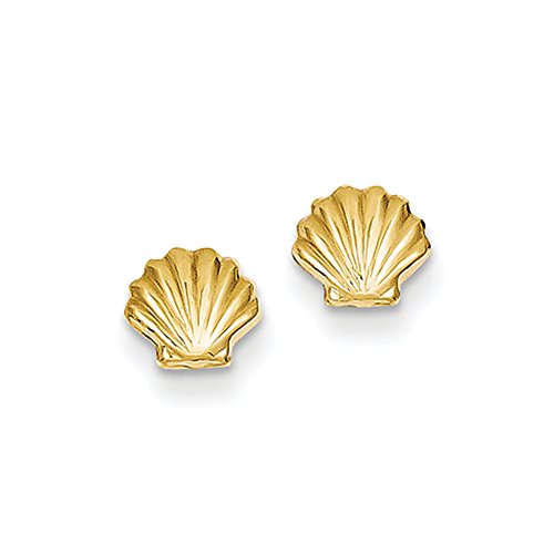 Capturing the perfection of nature's own design in a timeless scalloped seashell sculpted in gleaming 14k yellow gold. This friction-back post back earring measures approximately 6mm (1/4 inch) wide by 6mm (1/4 inch) long.Feature