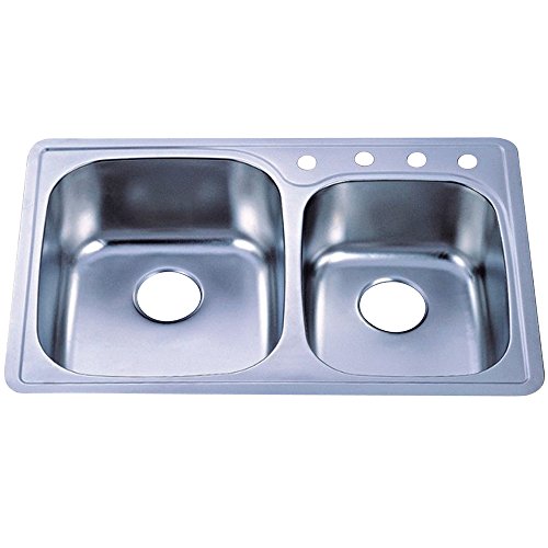 Kingston Brass Gourmetier GKTDD3322CH Studio Self-Rimming Double Bowl Kitchen Sink, Brushed Stainless Steel