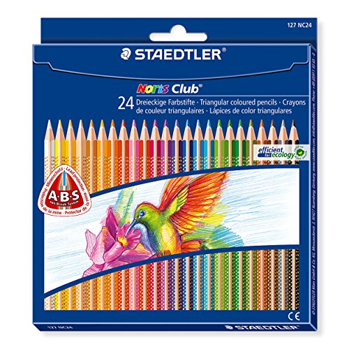 Staedtler Noris Club 127 NC24 Buntstifte, erhohte Bruchfestigkeit, dreikant, Set mit 24 brillanten Farben, kindgerecht nach DIN EN71, umweltfreundliches PEFC-Holz