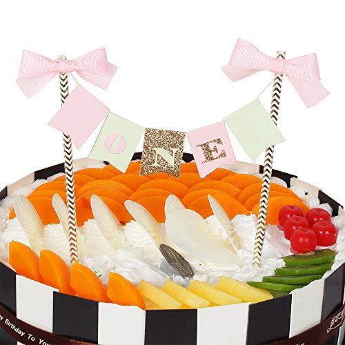 PALASASA Gold Glitter Cake Toppers Decorating "one" Banner | happy Birthday Party Decorations