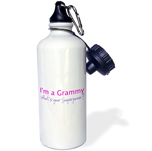 3dRose wb_193726_1 Im a Grammy-Whats Your Superpower-Pink-Funny Gift for Grandma Sports Water Bottle, 21 oz, White