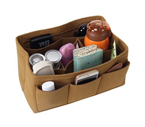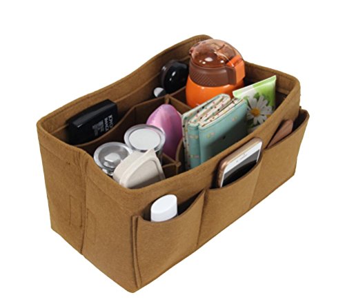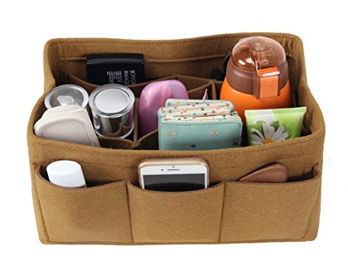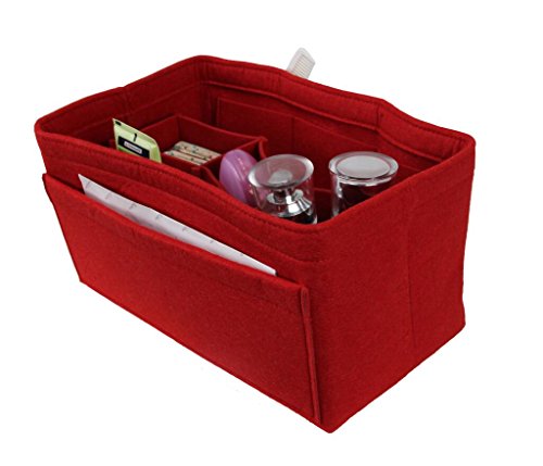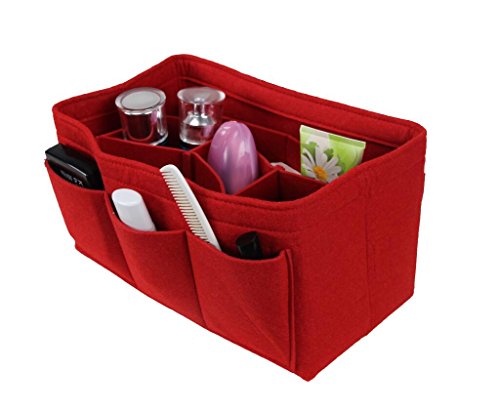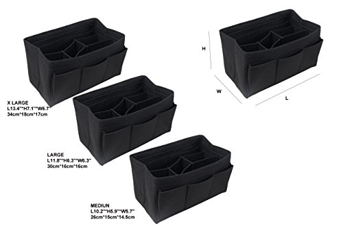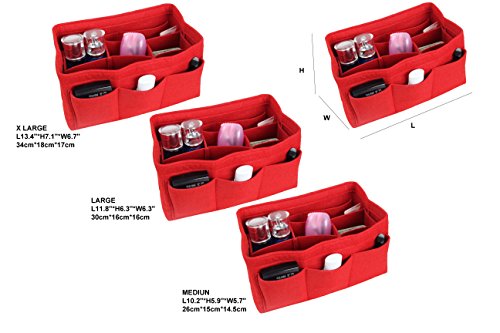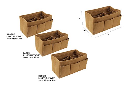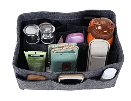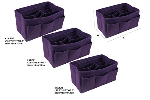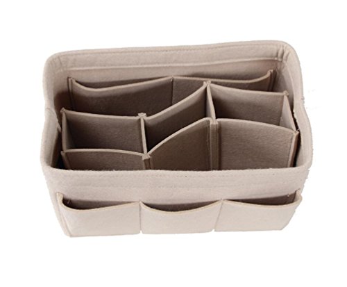 ORGANIZER REASONS ARE AS FOLLOWS: 1. It helps organize items and make your bag looks very clean neatly. 2. It helps retrieve items in seconds. 3. It makes switching bags a cinch. 4. It adds structure to a saggy handbag. 5. It prevents sharp objects (e.g. pens, keys, etc.) from damaging your bag.Material: Felt Fabric
