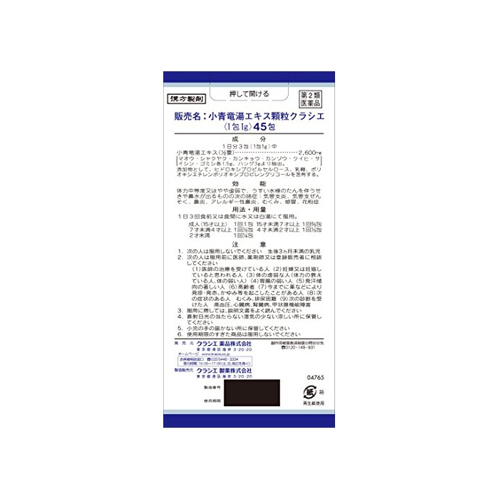 클라시에 한방 【제2류의약품】소청용탕엑기스 과립 클라시에 45봉지