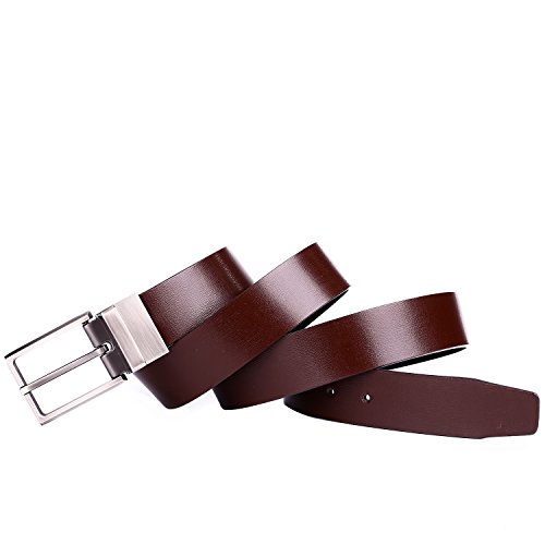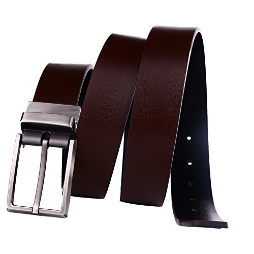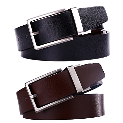 -. Binding : Apparel -. Brand : beltox fine -. Color : Black -. Department : mens -. Feature : Stiff smooth genuine leather belt 1.25" wide and 51.2" longest size from one end to the other end not includding the buckle / Both sides of the belt are fine made and good looking to match your dress pants. One size black and the other brown reversible / The buckle is rotated with a little strength when stretched. So the buckle match the belt well. Two in one belt. Classic and dress belts. / Plenty of length to fit big and tall men. Easy to trim to fit your size. Please buy one size more than your waist. The belt size is measured from the head end to the last grommets of the other end (not includding the buckle) ) / Environmental protection materials for the belt and buckle. Genuine leather belt and alloy buckle. The buckle is removable, you can replace it with your own. Versatile usage. -. PackageQuantity : 1 -. ProductGroup : Apparel -. ProductTypeName : ACCESSORY -. Title : Beltox Fine Men's Reversible Leather Formal Belt Rotated Buckle Size 30" to 48"