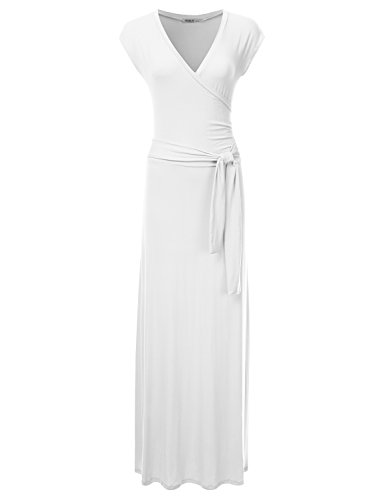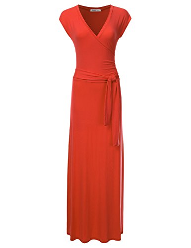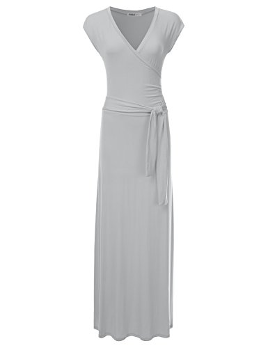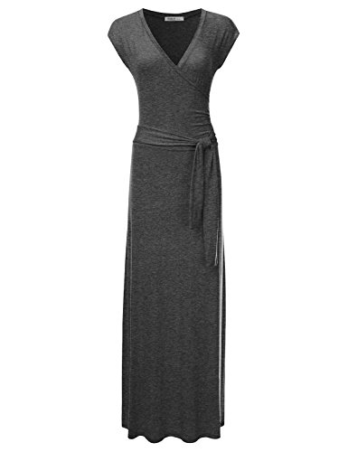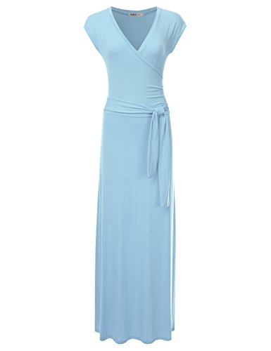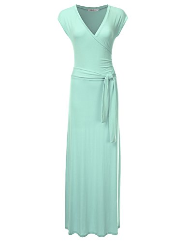 NINEXIS Women's V-Neck Cap Sleeve Waist Wrap Front Maxi Dress featuring short sleeves and a v-neck for extra breathability.