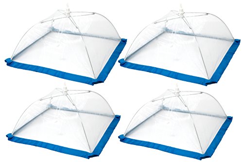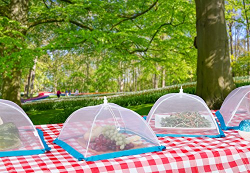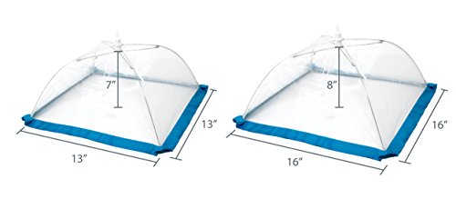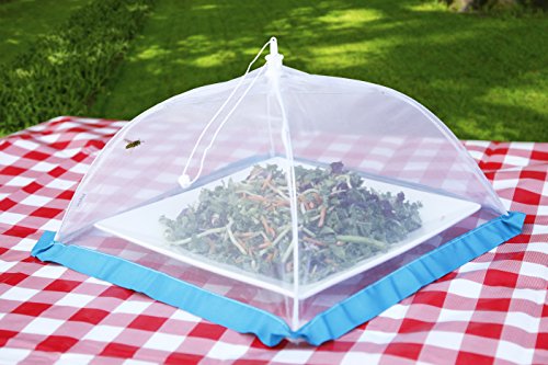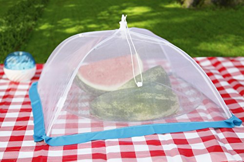 Studio : FlyFix Publisher : FlyFix Product Description FlyFixTM Pop-Up Mesh Food Tent Cover, Umbrella (Set of 4 - 2xRegular, 2x Large) Keeps out Flies and Insects for Picnics, Outdoors, Camping ?FINE MESH PROTECTION: 100% Polyester tight-knit mesh shields your food from flying insects, bugs, dirt and debris without obscuring what's inside. Ribbon trim acts as an extra-protective barrier. ?SET OF 4: 2 Regular-size (13" x 13" x 7") cover standard dinner plates; 2 Large-size (16" x 16" x 9.5") cover most serving bowls platters. ?POP-UP UMBRELLA DESIGN: Pull the drawstring to easily open and press on the tab to close flat for storage. Packs conveniently in a tote or picnic basket. ?3 TRIM COLORS: Grosgrain ribbon trim is available in blue, green, and red per set to coordinate with decor or Flyfix Fruit Fly Trap (sold sep.) Keep your food safe and clean from pesky flies and outdoor irritants with the FlyFixTM Food Tents. The tight-knit mesh creates a barrier against critters, falling leaves, dirt, and dander without obscuring what's inside so you can enjoy your outdoor gathering worry-free! You can even use indoors to safeguard fruit and vegetables. The clever, umbrella-style pop-open design is easy to use - simply pull on the drawstring to open, place over a dish, and get back to the fun. When the party's over, press the tab to close flat for storage. With 2 Regular and 2 Large tents, this 4-pack set is available in 3 color options so you can pick the look that goes best with your decor. 0