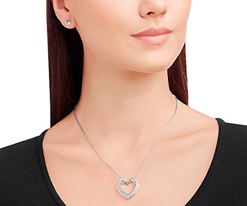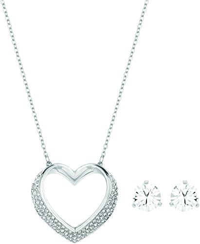 Modern and romantic, Swarovski's Cupidon set includes a reversible pendant and delicate pair of crystal solitaire pierced earrings. This pendant shines in rhodium-plated metal and features a beautifully cut heart embellished with clear crystal pave. It comes on an adjustable chain. Measures 15 5/8" / 1/8"
