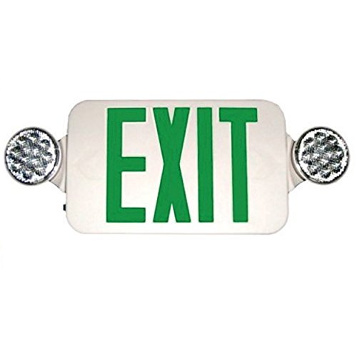 Morris 73534 Round Head LED Combo Exit Emergency Light with Self Diagnostic White Housing, Green