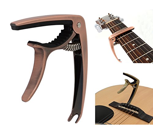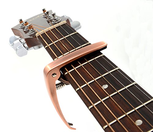 D-Best Al-Alloy Guitar Capo,Integrated Guitar Bridge Pin Puller, No Scratches, No Fret Buzz, for Acoustic and Electric Guitars,Ukulele, Banjo and Mandolin (Copper Red)