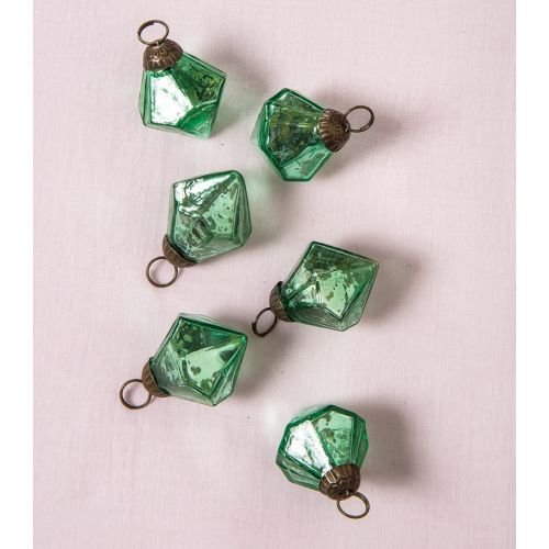 Luna Bazaar Mini Mercury Glass Ornaments (Elizabeth Design, 1-Inch, Vintage Green, Set of 6) - Vintage-Style Decorations