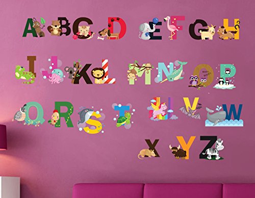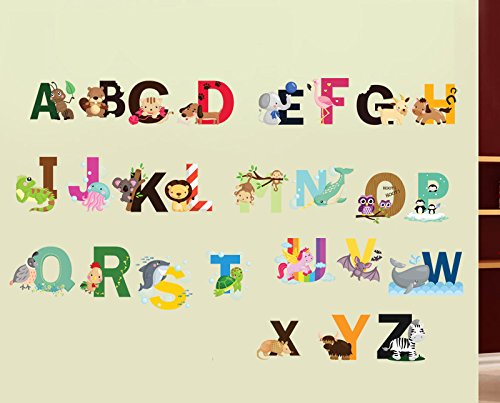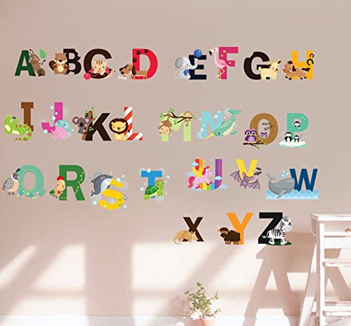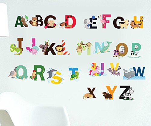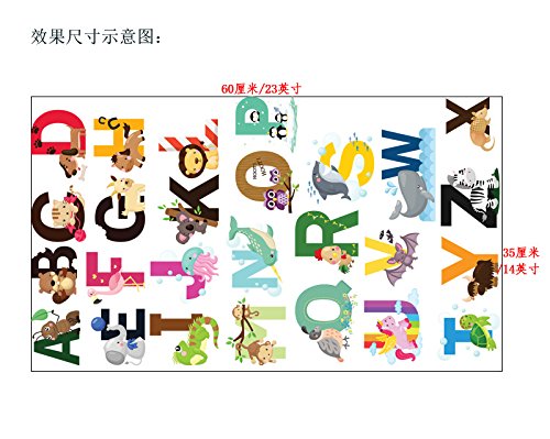 Amaonm Removable Cartoon English Lettering Words A-Z Early Education Wall Decals Cretive Animals 26 letters Wall Stickers for Babys Bedroom Living room...