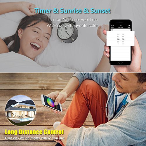 - WiFi Smart Strip Light controller: You can set this wifi led light strip to power on with the morning sun or at night, gently waking you, or to turn on and off as you leave or arrive home