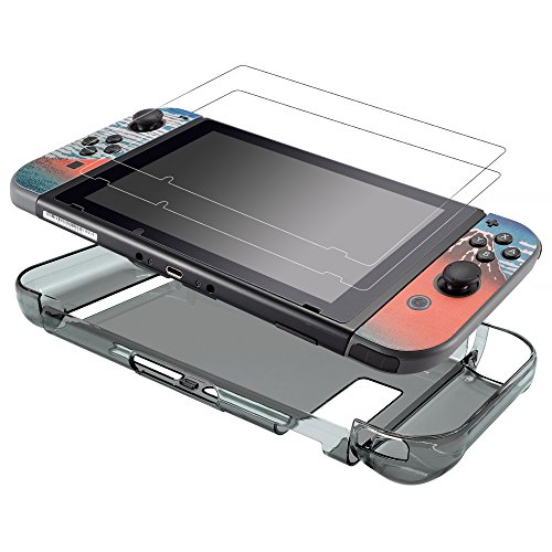 -. Title : eXtremeRate® Protective Crystal-Black Case for Nintendo Switch Console and Joy-Con (with Great Wave Skin Decal & Screen Protector)