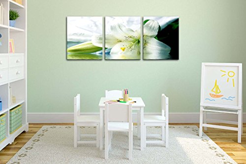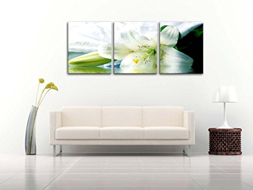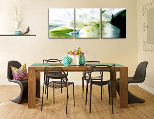 -. Title : Canvas P.R.Int Wall Art Painting For Home Decor Still Life Of Bright White Easter Lily Longflower Lily Flower In Full Bloom And Bud 3 Pieces Panel Paintings Modern Giclee Stretched And Framed Artwork The Picture For Living Room Decoration Flower Pictures Photo P.R.Ints On Canvas