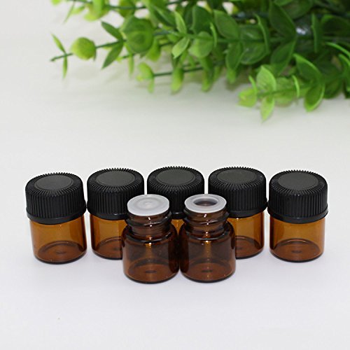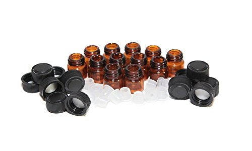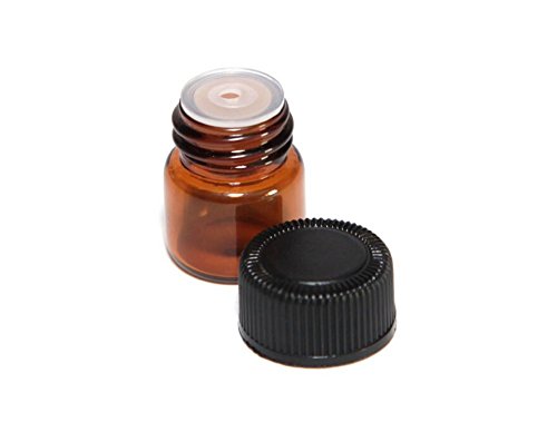 24PCS (1/4 dram) 1ML Refillable Empty Amber Glass Essential Oil Bottle/Jars/ with Orifice Reducer and Black Cap for Travel and Vacation