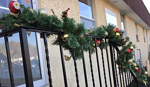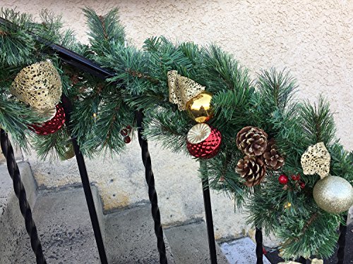 9' Pre-Lit Decorated Artificial Christmas Garland with Gold Balls, 50 Steady Warm White LEDs, timer and outdoor battery box