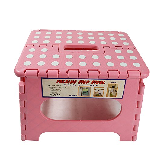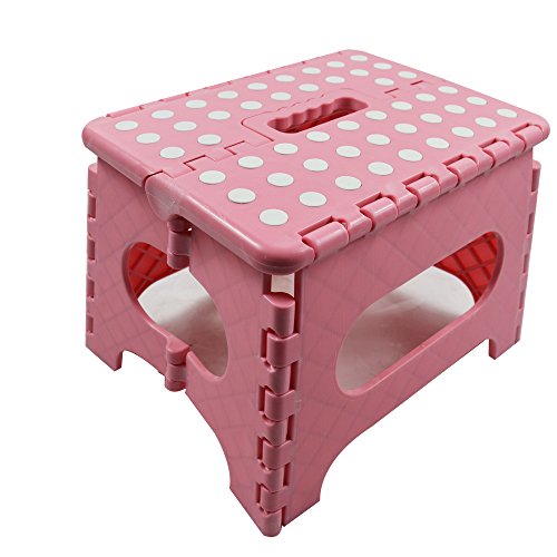 -. Title : INTBUYING Folding Step Stool - Duty Quality Folding Step Stool With Handle - Safe Non Slip Surface For Kids And Adults - Saves Space ,9" x 11", Pink(Item # 249223)