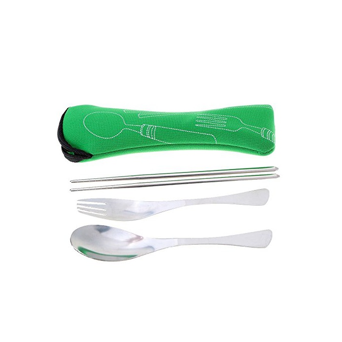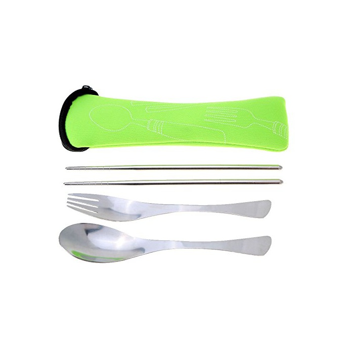 원본상품명: ピクニック食器,SODIAL(R)アウトドア ピクニック食器 フォ?ク+スプ?ン+箸 キャリア?バッグ付き(?光グリ?ン)