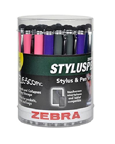 Zebra Telescopic Stylus Pen, Ballpoint, 1.0mm, Black Ink, Assorted Colors, 36-Pack (36307)