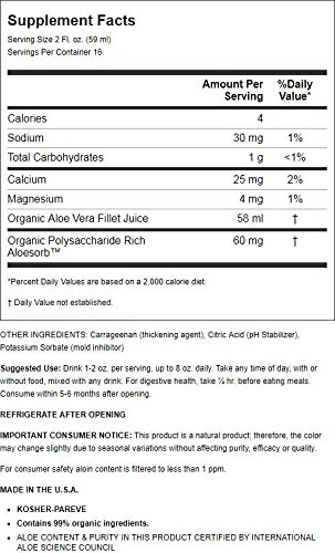 Our Preservative Free Aloe Vera Juice delivers essential amino acids, vitamins, minerals and enzymes. Lily of the Desert Preservative Free Aloe Vera Juice was the first on the market as a USDA certified organic aloe juice and it is now our #1 product! Plus, without preservatives, you will enjoy a milder taste in these juices.Feature