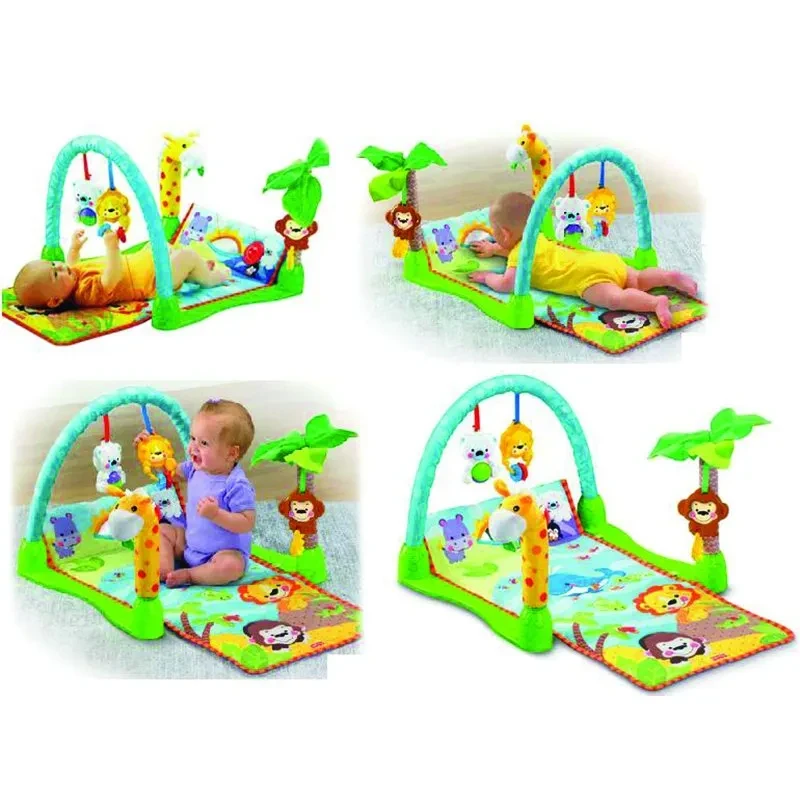 CT Toys Jungle Rhythm & Lights Play Gym allows your child to rest in the most comfortable environment as you lay them on a soft mat as well as let them play to their hearts content with a multitude of linked adorable jungle animal themed toys. Besides that, the gym responds to baby’s movement by playing music, sounds and a myriad of colorful dancing lights. A baby’s touch would also spin the colorful butterflies. The linked toys are shaped like a variety of jungle animals such as the cheeky monkey, the cuddly elephant, a colorful toucan, a beautiful butterfly and many more. It is also noteworthy that the gym comes with a user friendly volume control that could be easily adjusted accordingly. All functions of gym are equipped to help your child develop sensory skills through play and touch while sitting or lying down in a comfortable position.