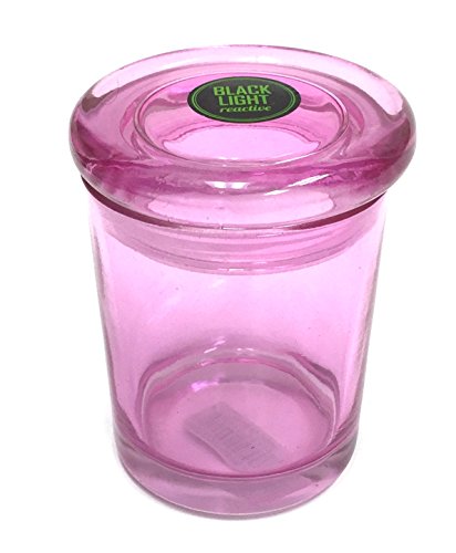 4"x3"Black Light Reactive Pop Top Jar Glass Medical Jar Herb Stash Container (Pink)