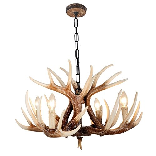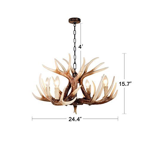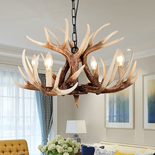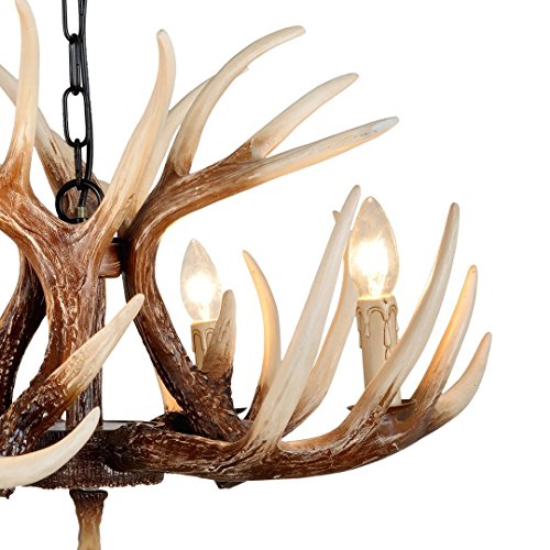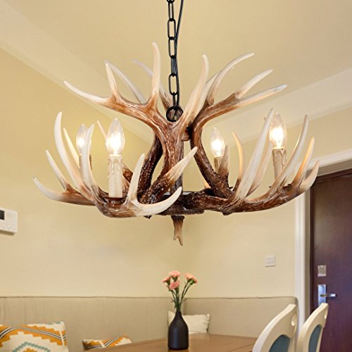 EFFORTINC Vintage Style Resin Deer Horn Antler Chandeliers,4 Lights(Bulbs Not Included)