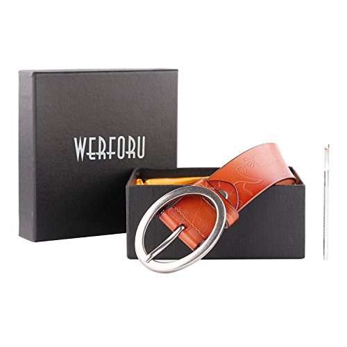 -. Title : WERFORU Vintage Leather Belts for Women Embossed Western Strap with Round Buckle