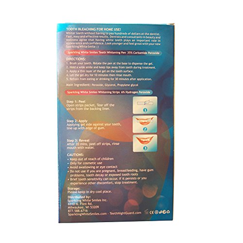 One of the reasons why this tooth whitening system is one of our bestsellers is because it contains tooth whitener strips AND a teeth whitening pen. The strips and the pen can be used together to maximize your teeth whitening results and give you a smile that is up to 6 shades whiter in just 2 weeks. Each tooth whitening kit also includes a teeth shade chart that makes it easy to track progress with each round of whitening.
