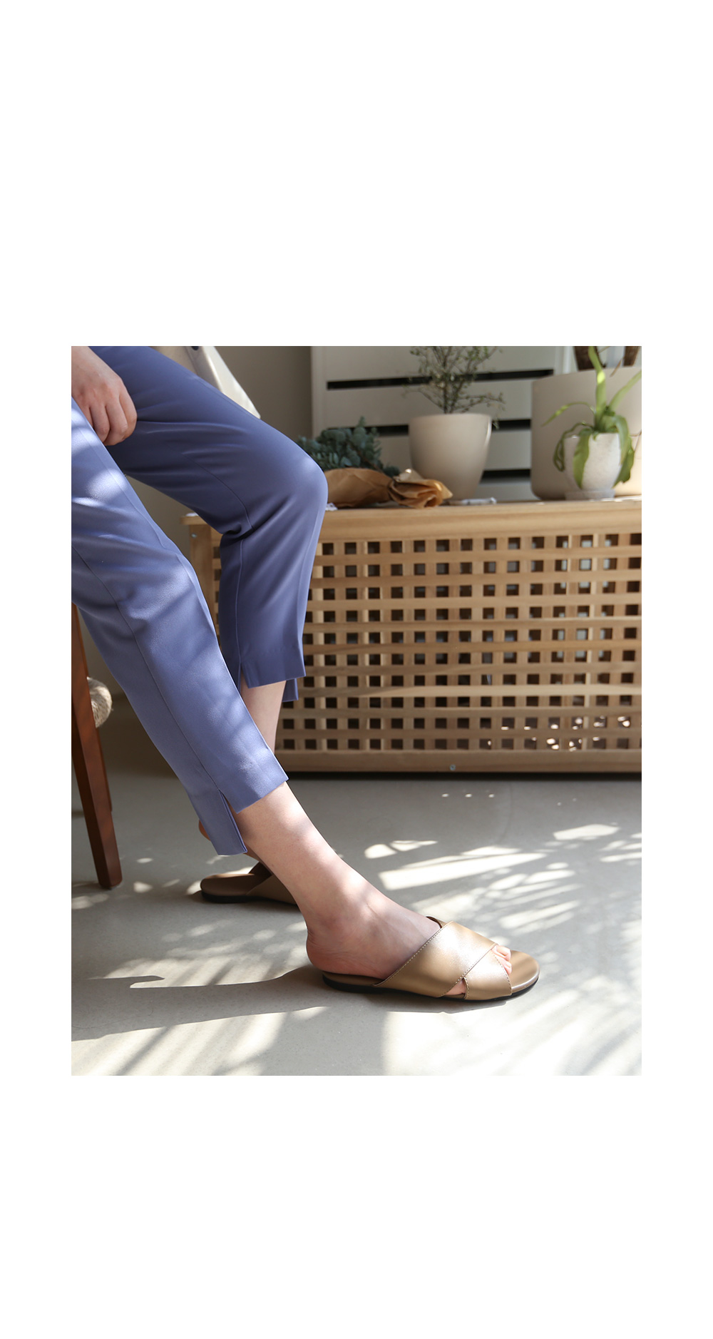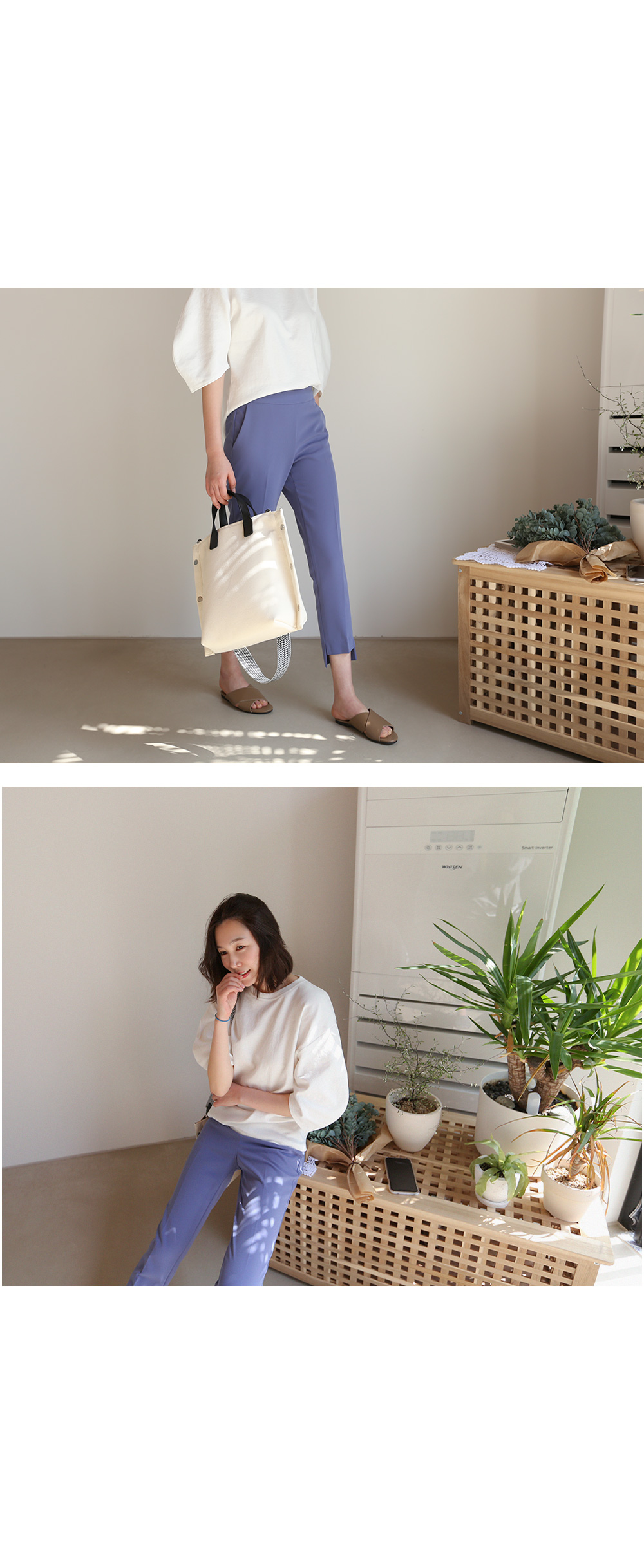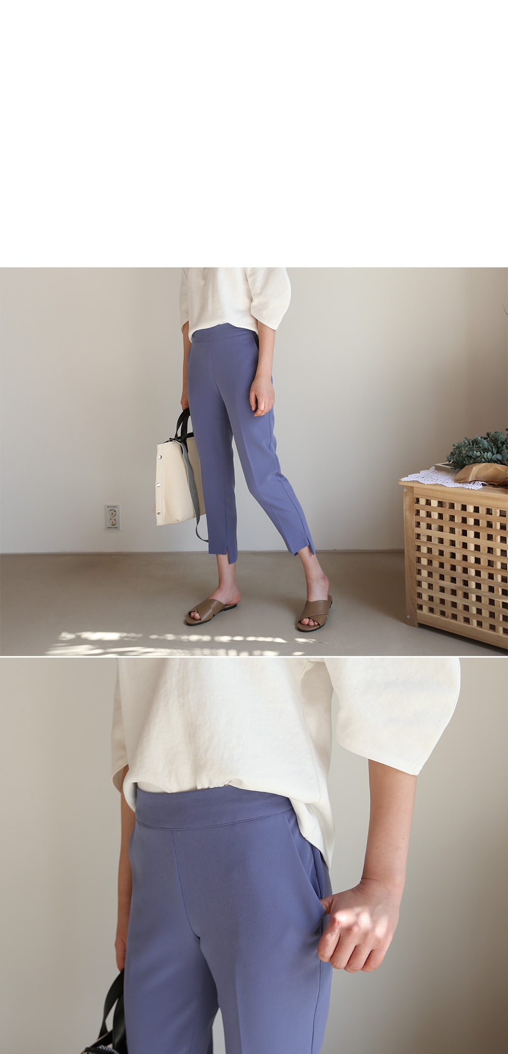 언발란스한 밑단 트임 역시 슬랙스 자체의 비주얼을 한껏 높여주며 러블리함과 동시에 역동적인 디자인으로 완성시켰습니다.