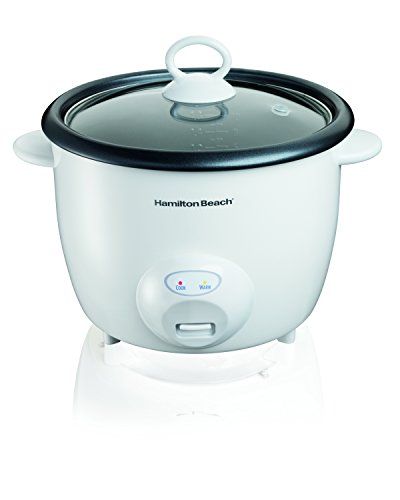 The Hamilton Beach Rice Cooker automatically cooks rice, then shifts to keep warm. Other features include a nonstick bowl and glass lid. Accessories included.