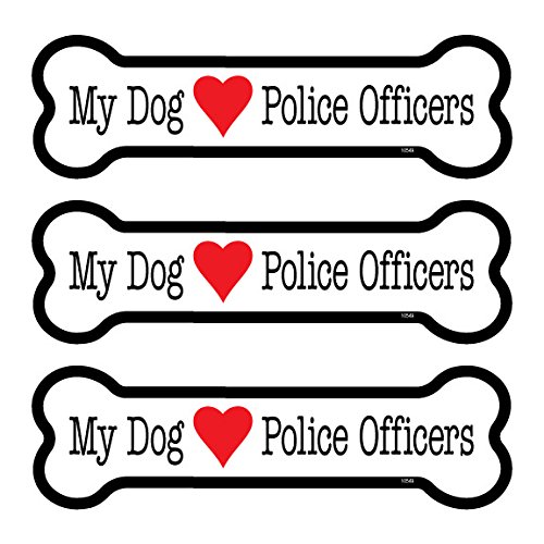 (SJT25549) My dog (loves) Police Officers 3-PACK of 2" x 7" Bone Shaped Car Magnets