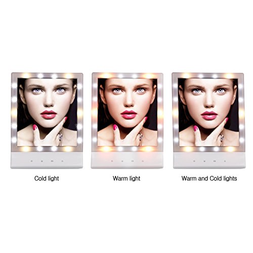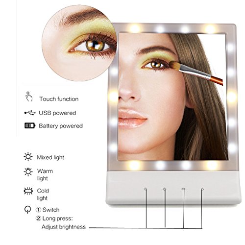 ★3 Difierent Mode Illumination Setting: The fluorescent lighting on this makeup mirror is glare free and Built-in 18 bright LED bulbs (12 cool white & 6 warm white) Each setting is designed with color-corrected lighting that will fit daytime, evening, home or office environments etc.