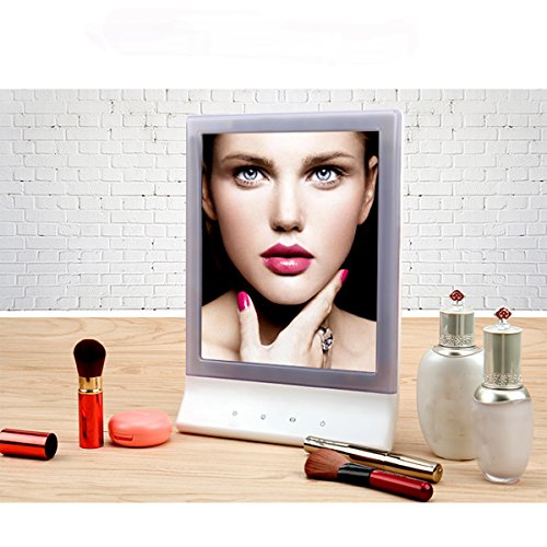★Wall Mount or Desktop Options:If you are tired of sitting to make up. You can Hung Up the LED Makeup Mirror with the Hanging Hole on the Back.Free standing with a foldable kickstand at the back which can be adjusted up and down in the desk. Have the Mirror at Different Angle According to Your Demand.