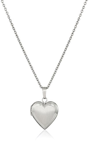 Girls' Sterling Silver Children's Petite Heart Satin Finish with Polished Edge Locket Necklace, 14.75"
