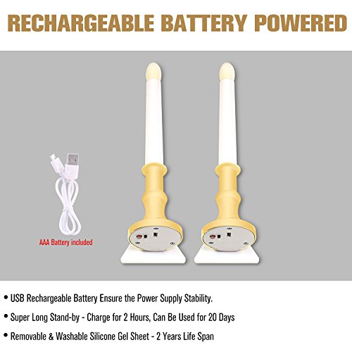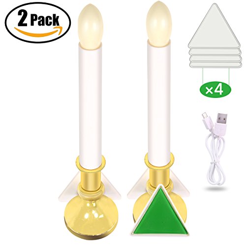 JESTEK LED Candle Light, Taper Flameless Candls Light-Sensitive Window Lights with Removable Silicone Sticker, USB Rechargeable Battery Power Wall Lamp Christmas Decorative Night Light ( 2 Pack )